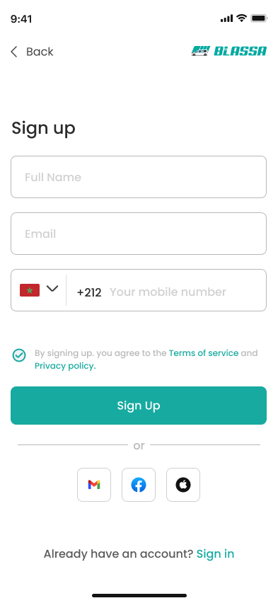 Blassa is a private app designed to help users navigate the grand taxi system in the Casablanca-Settat region by creating groups of six passengers and managing payments through an integrated wallet system.